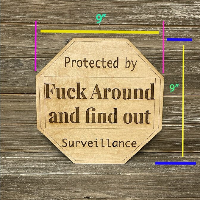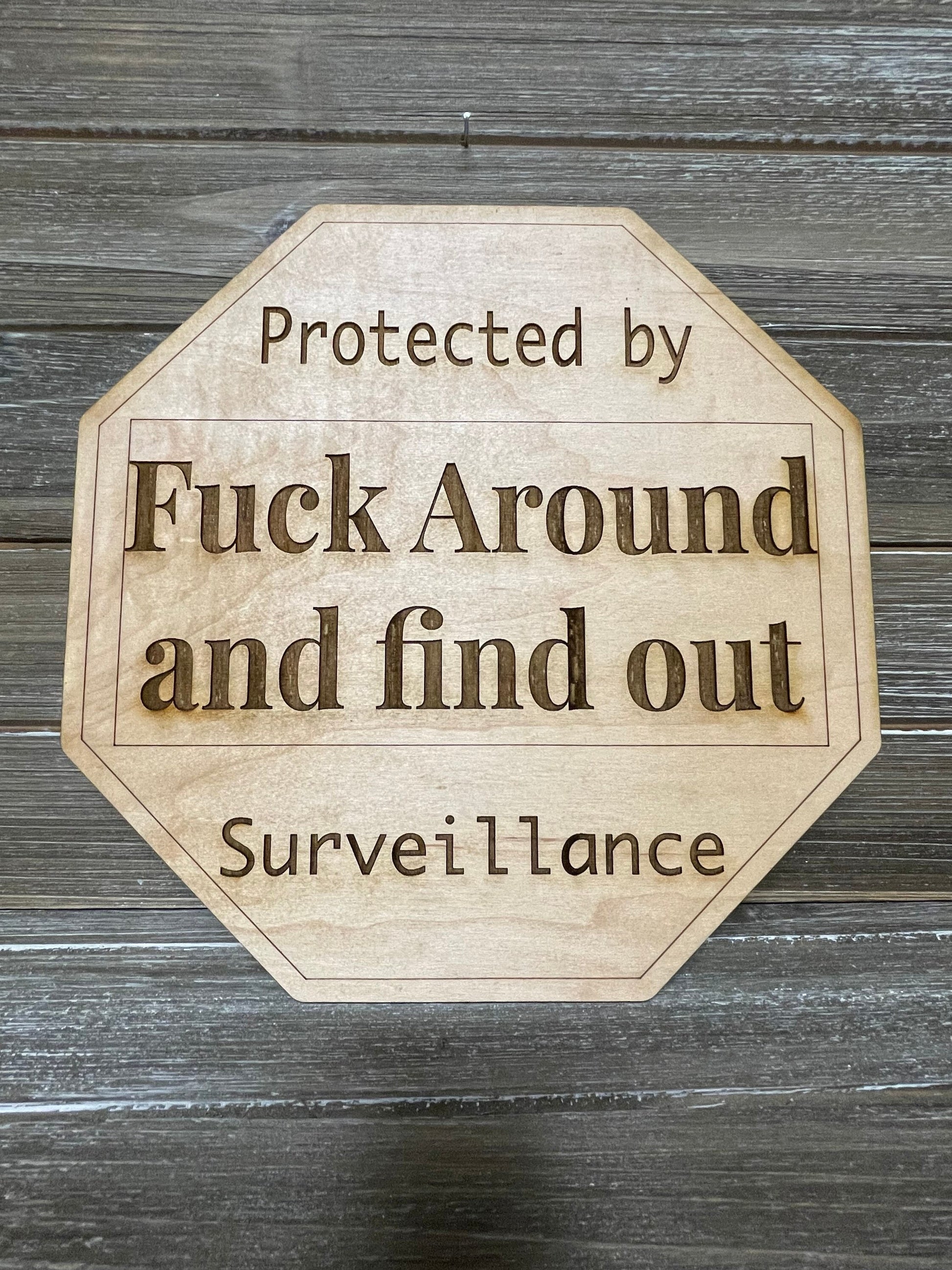 Just like the title says " Fuck around find out" Surveillance signs. Meant to be funny, but serious. These signs are great for being placed in Mulch beds, flower beds, front or back doors, garages.